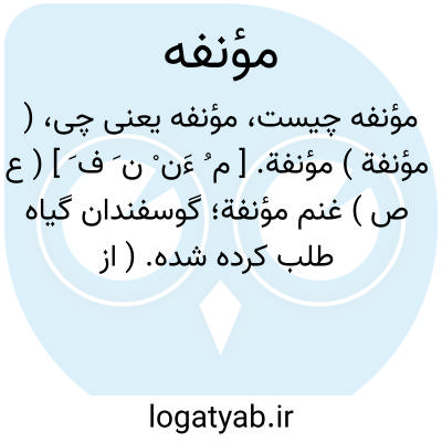 ( مؤنفة ) مؤنفة. [ م ُ ءَن ْ ن َ ف َ ] ( ع ص ) غنم مؤنفة؛ گوسفندان گیاه طلب کرده شده. ( از منتهی الارب ) ( ناظم الاطباء ).