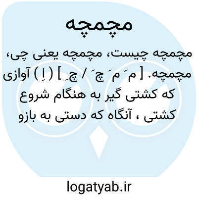 مچمچه. [ م َ م َ چ َ / چ ِ ] ( اِ ) آوازی که کشتی گیر به هنگام شروع کشتی، آنگاه که دستی به بازو می زند، برمی آورد و سپس دست حریف را می گیرد. ( از فرهنگ فارسی معین ).