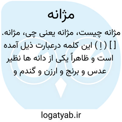 مژانه. [ ] ( اِ ) این کلمه درعبارت ذیل آمده است و ظاهراً یکی از دانه ها نظیر عدس و برنج و ارزن و گندم و شاهدانه باید باشد: و دیگر سه درم رابادام و سه درم رُسْته و سه درم مژانه شور به من دهند. ( انیس الطالبین بخاری، ص 83 ). دیگری بیامد و در طبقی مژانه شور آورد از او پرسیدند؛ به چند درم خریده ای گفت به سه درم. ( انیس الطالبین بخاری، ص 83 ) ( از یادداشت به خط مرحوم دهخدا ).