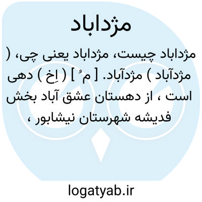 ( مژدآباد ) مژدآباد. [ م ُ ] ( اِخ ) دهی است، از دهستان عشق آباد بخش فدیشه شهرستان نیشابور، واقع در 18هزارگزی شمال شرقی فدیشه دارای 182تن سکنه. آبش از قنات و محصولش غلات، تریاک و شغل اهالی زراعت و مال دارای و صنایع دستی آن قالیچه بافی و راه آن مال رو است. ( از فرهنگ جغرافیایی ایران ج 9 ).