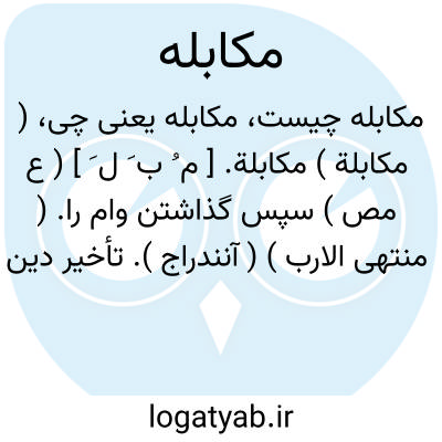 ( مکابلة ) مکابلة. [ م ُ ب َ ل َ ] ( ع مص ) سپس گذاشتن وام را. ( منتهی الارب ) ( آنندراج ). تأخیر دین و سپس گذاشتن وام. ( ناظم الاطباء ) ( از اقرب الموارد ). || درنگ کردن. ( منتهی الارب ) ( آنندراج ) ( ناظم الاطباء ) ( از اقرب الموارد ). || بازداشتن. ( منتهی الارب ) ( آنندراج ). بازداشتن و حبس کردن. ( ناظم الاطباء ). || تأخیر کردن در خریدن خانه همسایه تا چون دیگری خواهد بخرد او شفعه طلب کند، و این مکروه دانسته شده است. ( از منتهی الارب ) ( از آنندراج ) ( از ناظم الاطباء ) ( از اقرب الموارد ).