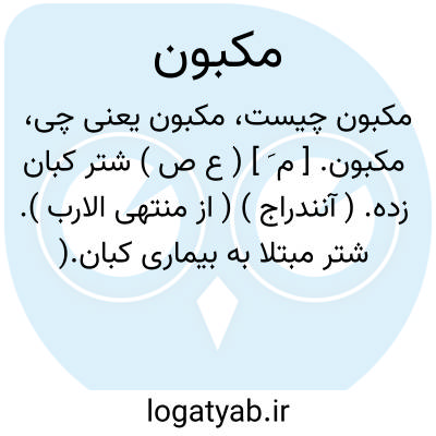 مکبون. [ م َ ] ( ع ص ) شتر کبان زده. ( آنندراج ) ( از منتهی الارب ). شتر مبتلا به بیماری کبان.( ناظم الاطباء ) ( از اقرب الموارد ). || اسب کوتاه پای فراخ شکم باریک استخوان. مکبونة. ج، مکابین.( منتهی الارب ) ( از ناظم الاطباء ) ( از اقرب الموارد ). || مکبون الاصابع؛ مرد درشت انگشتان. ( منتهی الارب ) ( آنندراج ) ( ناظم الاطباء ) ( از اقرب الموارد ).