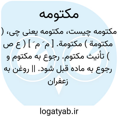 ( مکتومة ) مکتومة. [ م َ م َ ] ( ع ص ) تأنیث مکتوم. رجوع به مکتوم و رجوع به ماده قبل شود. || روغن به زعفران یا به وسمه آمیخته. ( منتهی الارب ) ( ناظم الاطباء ) ( از اقرب الموارد ).