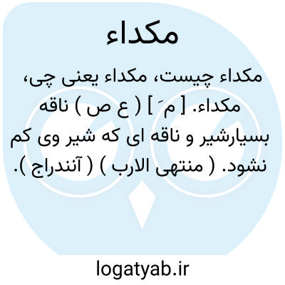 مکداء. [ م َ ] ( ع ص ) ناقه بسیارشیر و ناقه ای که شیر وی کم نشود. ( منتهی الارب ) ( آنندراج ). ماده شتر بسیارشیر. ( ناظم الاطباء ) ( از اقرب الموارد ).