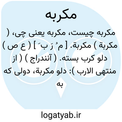 ( مکربة ) مکربة. [ م ُ رَ ب َ ] ( ع ص ) دلو کرب بسته. ( آنندراج ) ( از منتهی الارب ): دلو مکربة، دولی که به دسته آن ریسمانی بسته و طناب بزرگ آبکشی را بدان می بندند تا نپوسد و تباه نگردد. ( ناظم الاطباء ).