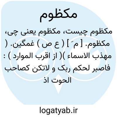 مکظوم. [ م َ ] ( ع ص ) غمگین. ( مهذب الاسماء )( از اقرب الموارد ): فاصبر لحکم ربک و لاتکن کصاحب الحوت اذ نادی و هو مکظوم. ( قرآن 48/68 )؛ خدای را بخواند و او مکظوم ومغموم بود و اندوه رسیده. ( تفسیرابوالفتوح ص 382 ).