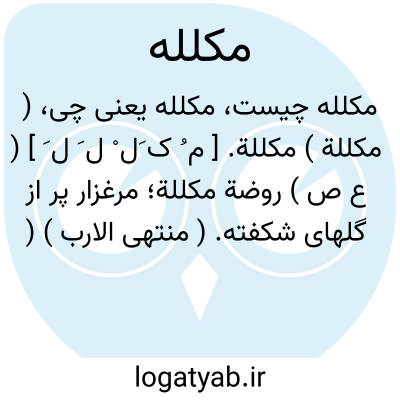 ( مکللة ) مکللة. [ م ُ ک َل ْ ل َ ل َ ] ( ع ص ) روضة مکللة؛ مرغزار پر از گلهای شکفته. ( منتهی الارب ) ( آنندراج ) ( ناظم الاطباء ) ( از اقرب الموارد ). || آنکه گرد بر گرد کاسه گوشت نهاده بود. ( مهذب الاسماء ): جفنة مکللة بالسدیف؛ کاسه ای که بر آن پاره های گوشت باشد. ( از اقرب الموارد ).