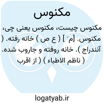 مکنوس. [م َ ] ( ع ص ) خانه رفته. ( آنندراج ). خانه روفته و جاروب شده. ( ناظم الاطباء ) ( از اقرب الموارد ) ( از محیطالمحیط ). || در گنجینه نهاده. ( ناظم الاطباء ). ظاهراً تصحیف مکنوز است. و رجوع به مکنوز شود.