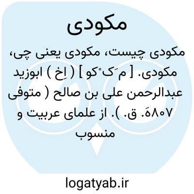 مکودی. [ م َک ْکو ] ( اِخ ) ابوزید عبدالرحمن علی بن صالح ( متوفی 807هَ. ق. ). از علمای عربیت و منسوب به بنی مکود ( قبیله ای به نزدیک فاس ) است. او راست: «شرح الفیه ابن مالک » در نحو و کتب دیگر. ( از اعلام زرکلی ج 3 ص 501 ).