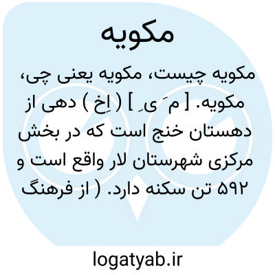 مکویه. [ م َ ی ِ ] ( اِخ ) دهی از دهستان خنج است که در بخش مرکزی شهرستان لار واقع است و 592 تن سکنه دارد. ( از فرهنگ جغرافیایی ایران ج 7 ). و رجوع به مکو شود.