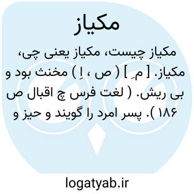 مکیاز. [ م ِ ] ( ص، اِ ) مخنث بود و بی ریش. ( لغت فرس چ اقبال ص 186 ). پسر امرد را گویند و حیز و مخنث و پشت پاپی را نیز گفته اند. ( برهان ) ( آنندراج ) ( از ناظم الاطباء ):