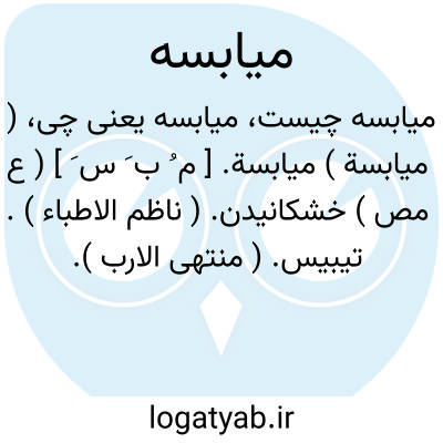 ( میابسة ) میابسة. [ م ُ ب َ س َ ] ( ع مص ) خشکانیدن. ( ناظم الاطباء ). تیبیس. ( منتهی الارب ).