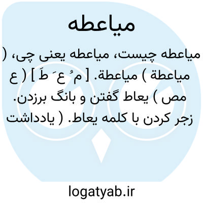 ( میاعطة ) میاعطة. [ م ُ ع َ طَ ] ( ع مص ) یعاط گفتن و بانگ برزدن. زجر کردن با کلمه یعاط. ( یادداشت مؤلف ). کلمه یعاط گفتن هر کسی را. ( ناظم الاطباء ). و رجوع به یعاط شود.