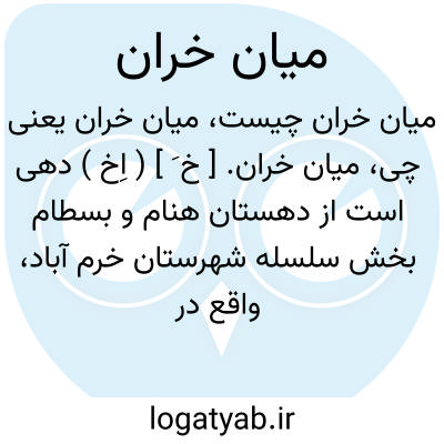 میان خران. [ خ َ ] ( اِخ ) دهی است از دهستان هنام و بسطام بخش سلسله شهرستان خرم آباد، واقع در 8هزارگزی خاور الشتر با 240 تن سکنه. آب آن از رودخانه و راه آن مالرو است. ( از فرهنگ جغرافیائی ایران ج 6 ).