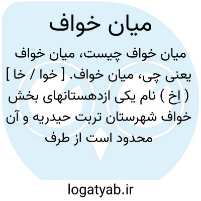 میان خواف. [ خوا / خا ] ( اِخ ) نام یکی ازدهستانهای بخش خواف شهرستان تربت حیدریه و آن محدود است از طرف شمال به دهستان بالا خواف، از جنوب به دهستان پایین خواف از باختر به دهستان زوزن، از خاور به بخش فریمان. این دهستان از 30 آبادی بزرگ و کوچک با8130 تن جمعیت تشکیل شده و دیه های مهم آن تیزآب و خرگرد است. موقعیت طبیعی آن کوهستانی و جلگه و هوایش نسبتاً معتدل است. ( از فرهنگ جغرافیائی ایران ج 9 ).