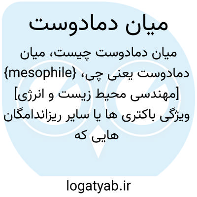 {mesophile} [مهندسی محیط زیست و انرژی] ویژگی باکتری ها یا سایر ریزاندامگان هایی که بیشترین رشد آنها در دمای متوسط حدود 25 تا 40 درجۀ سلسیوس است