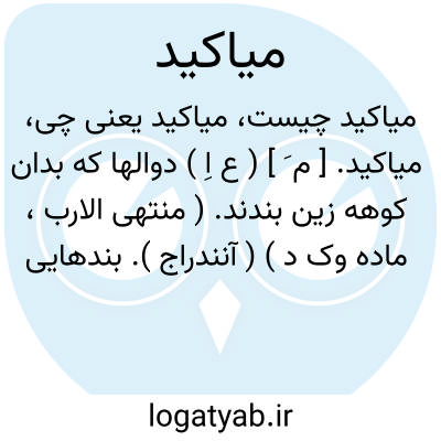 لغت نامه دهخدا میاکید. [ م َ ] ( ع اِ ) دوالها که بدان کوهه زین بندند. ( منتهی الارب، ماده وک د ) ( آنندراج ). بندهایی که بدان جزءپیشین پالان شتر را به هم می بندند. ( ناظم الاطباء ).