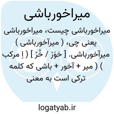 لغت نامه دهخدا ( میرآخورباشی ) میرآخورباشی. [ خوَرْ / خُرْ ] ( اِ مرکب ) ( میر + آخور + باشی که کلمه ترکی است به معنی سر ) سردار کارکنان اصطبل پادشاهی. ( غیاث )( آنندراج ). امیرآخورباشی. و رجوع به میرآخور شود.