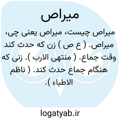 میراص. ( ع ص ) زن که حدث کند وقت جماع. ( منتهی الارب ). زنی که هنگام جماع حدث کند. ( ناظم الاطباء ).