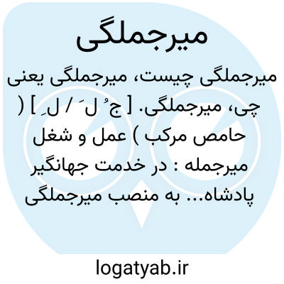میرجملگی. [ ج ُ ل َ / ل ِ ] ( حامص مرکب ) عمل و شغل میرجمله: در خدمت جهانگیر پادشاه... به منصب میرجملگی سرافراز شده. ( از تذکره نصرآبادی 56 ).