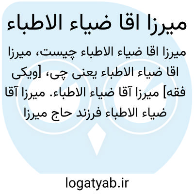 [ویکی فقه] میرزا آقا ضیاء الاطباء. میرزا آقا ضیاء الاطباء فرزند حاج میرزا محمود حکیم باشی، از سیاسیون و نمایندگان مجلس در دوره پهلوی می باشد.