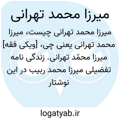 [ویکی فقه] میرزا محمّد تهرانی. زندگی نامه تفضیلی میرزا محمد ربیب در این نوشتار آورده شده است.این متن، ذیل عنوان میرزا محمد تهرانی در کتاب گلشن ابرار آمده است.(۱۳۷۱ - ۱۲۸۱ق)