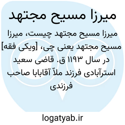 [ویکی اهل البیت] میرزا مسیح استرآبادی معروف به میرزا مسیح مجتهد (۱۱۹۴ ق تهران) از علمای بنام قرن سیزدهم است. وی فرزند قاضی محمد سعید و نسب او از استرآباد است.
