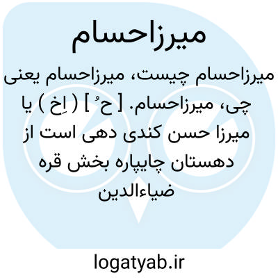 میرزاحسام. [ ح ُ ] ( اِخ ) یا میرزا حسن کندی دهی است از دهستان چایپاره بخش قره ضیاءالدین شهرستان خوی، واقع در 9 هزارگزی شمال قره ضیاءالدین با 293 تن سکنه. آب آن از قنات و راه آن ماشین رو است. ( از فرهنگ جغرافیائی ایران ج 4 ).