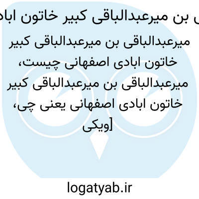 [ویکی فقه] میرعبدالباقی بن میرعبدالباقی کبیر خاتون آبادی اصفهانی. میرعبدالباقی بن میرعبدالباقی کبیر خاتون آبادی اصفهانی، معروف به میرعبدالباقی خاتون آبادی صغیر، از علمای اصفهان در قرن سیزده هجری بوده است.