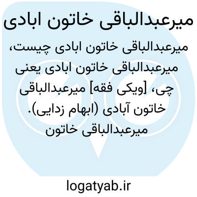 [ویکی فقه] میرعبدالباقی خاتون آبادی (ابهام زدایی). میرعبدالباقی خاتون آبادی، ممکن است اشاره به اشخاص و شخصیت های ذیل باشد: • میرعبدالباقی خاتون آبادی کبیر، از مجتهدین و علمای اصفهان در قرن دوازدهم هجری• میرعبدالباقی خاتون آبادی صغیر، از علمای اصفهان در قرن سیزده هجری
