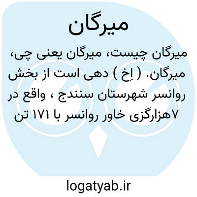 میرگان. ( اِخ ) دهی است از بخش روانسر شهرستان سنندج، واقع در 7هزارگزی خاور روانسر با 171 تن سکنه. آب آن از چشمه قره سو روانسر و آب برف و باران و راه آن ماشین روست. ( از فرهنگ جغرافیائی ایران ج 5 ).