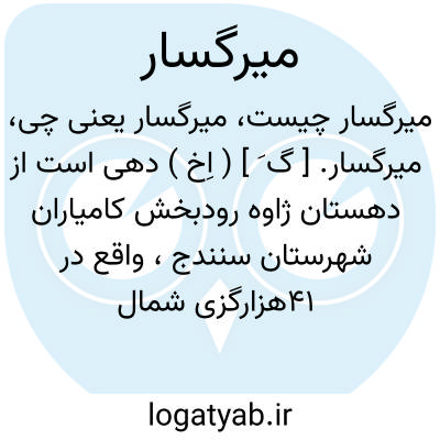 میرگسار. [ گ َ ] ( اِخ ) دهی است از دهستان ژاوه رودبخش کامیاران شهرستان سنندج، واقع در 41هزارگزی شمال باختری کامیاران با 133 تن سکنه. آب آن از چشمه و راه آن مالرو است. ( از فرهنگ جغرافیائی ایران ج 5 ).