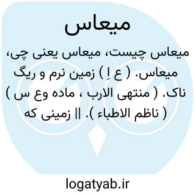 میعاس. ( ع اِ ) زمین نرم و ریگ ناک. ( منتهی الارب، ماده وع س ) ( ناظم الاطباء ). || زمینی که پاسپرده نشده. || ریگ نرم. ج، مواعیس. ( منتهی الارب ) ( ناظم الاطباء ). آن ریگ که دشوار بود رفتن در آن. ( مهذب الاسماء ). || راه ( کانه ضد معنی که زمین سپرده نشده است باشد ). ( منتهی الارب ). راه. ( ناظم الاطباء ).