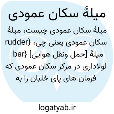 {rudder bar} [حمل ونقل هوایی] میلۀ لولاداری در مرکز سکان عمودی که فرمان های پای خلبان را به سکان عمودی منتقل می کند