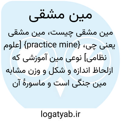 {practice mine} [علوم نظامی] نوعی مین آموزشی که ازلحاظ اندازه و شکل و وزن مشابه مین جنگی است و ماسورۀ آن مقدار کمی مادۀ منفجرۀ کُندشکن یا دودزا دارد