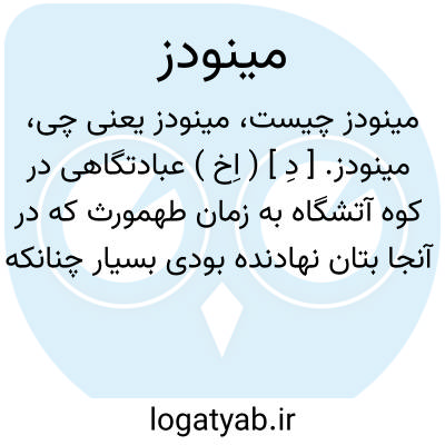 مینودز. [ دِ ] ( اِخ ) عبادتگاهی در کوه آتشگاه به زمان طهمورث که در آنجا بتان نهادنده بودی بسیار چنانکه از جمله شهرهای مشرق آنجا آمدندی به حج کردن تا روزگار گشتاسف و اسفندیار به فرمان پدر آن را از بتان خالی کرد و آتشگاه کرد و هم بر آن بماند تا شاه اسکندر آن را خراب کرد و چنان آورده اند که طهمورث آنجا نهاده است. ( از مجمل التواریخ و القصص چ بهار ص 461 و 462 ).