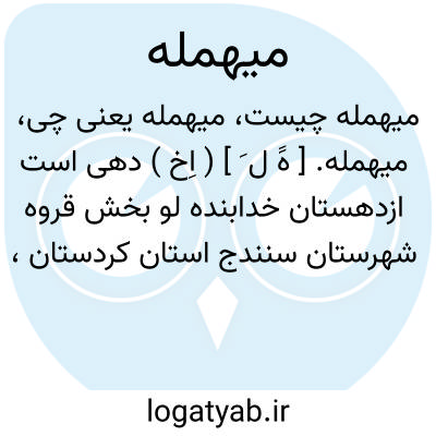 لغت نامه دهخدا میهمله. [ هََ ل َ ] ( اِخ ) دهی است ازدهستان خدابنده لو بخش قروه شهرستان سنندج استان کردستان، واقع در 17هزارگزی جنوب خاوری گل تپه و کنار شوسه همدان با 1100 تن سکنه. آب آن از چشمه و قنات وراه آن شوسه است. ( از فرهنگ جغرافیائی ایران ج 5 ).