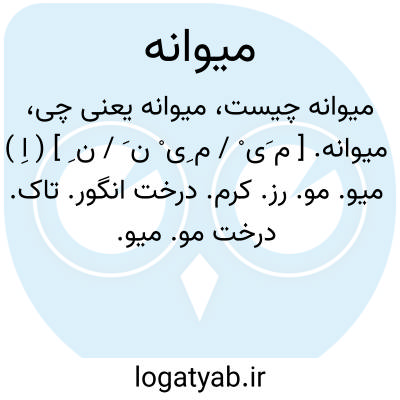 میوانه. [ م َی ْ / م ِی ْ ن َ / ن ِ ] ( اِ ) میو. مو. رز. کرم. درخت انگور. تاک. درخت مو. میو. انگور. ( یادداشت مؤلف ). رجوع به ماده قبل و مو و مترادفات دیگر شود.