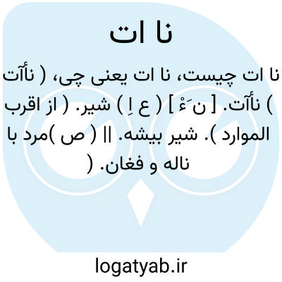لغت نامه دهخدا ( نأآت ) نأآت. [ ن َءْ ] ( ع اِ ) شیر. ( از اقرب الموارد ). شیر بیشه. || ( ص )مرد با ناله و فغان. ( منتهی الارب ) ( ناظم الاطباء ).