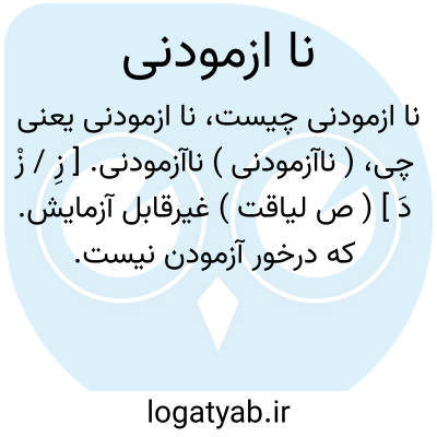 ( نا آزمودنی ) ( صفت ) ۱ - غیرقابل آزمودن. ۲ - آنچه که احتیاج بامتحان و آزمایش ندارد مقابل آزمودنی