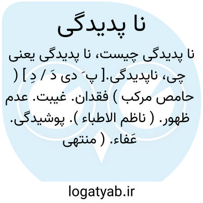 ناپدیدگی.[ پ َ دی دَ / دِ ] ( حامص مرکب ) فقدان. غیبت. عدم ظهور. ( ناظم الاطباء ). پوشیدگی. عَفاء. ( منتهی الارب ).
