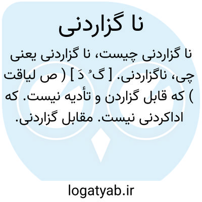 ناگزاردنی. [ گ ُ دَ ] ( ص لیاقت ) که قابل گزاردن و تأدیه نیست. که اداکردنی نیست. مقابل گزاردنی.