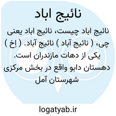 ( نائیج آباد ) نائیج آباد. ( اِخ ) یکی از دهات مازندران است. دهستان دابو واقع در بخش مرکزی شهرستان آمل شامل 105 ده و آبادی بزرگ و کوچک است، و از آنجمله یکی «نائیج آباد» است. این ده در 12 هزارگزی شمال خاوری آمل، در دشت همواری قرار دارد. هوایش معتدل و مرطوب است و منطقه مالاریاخیزی است. آب آنجا از چشمه تأمین میشود. محصولش برنج و صیفی است. بوسیله راه مالرو به آبادیهای دیگر مربوط است و مردمش به کار زراعت مشغولند. سکنه اش 230 نفر و شیعه مذهبند و زبان فارسی را به لهجه مازندرانی تکلم می کنند. ( از فرهنگ جغرافیایی ایران ج 3 ص 11 و 298 ).