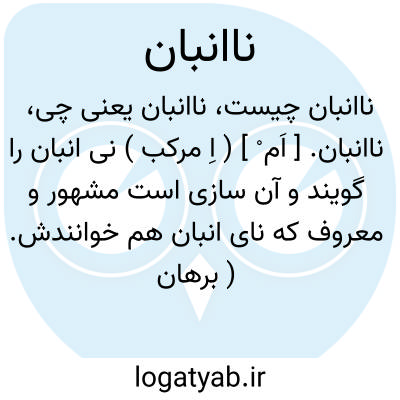 ناانبان. [ اَم ْ ] ( اِ مرکب ) نی انبان را گویند و آن سازی است مشهور و معروف که نای انبان هم خوانندش. ( برهان قاطع ). سازی است معروف که نی انبان نیز گویند: آنها که مقیم حضرت جانانند یادش نکنند و بر لسان کم رانند آنانکه مثال نای ناانبانند دورند از او ازآن به بانگش خوانند.باباافضل.رجوع به نای انبان شود.