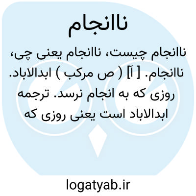 ناانجام. [ اَ] ( ص مرکب ) ابدالاباد. روزی که به انجام نرسد. ترجمه ابدالاباد است یعنی روزی که انتهاپذیر نباشد، از طرف مستقبل. ( انجمن آرای ناصری ). بی پایان. که انتهائی ندارد. ابد. ( اشتینگاس ).