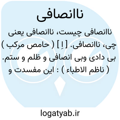 ناانصافی. [ اِ ] ( حامص مرکب ) بی دادی وبی انصافی و ظلم و ستم. ( ناظم الاطباء ): این مفسدت و ناانصافی را به عیوق رسانید و بکلی کار مملکت و ولایت داری به زیان برد. ( تاریخ غازانی ص 247 ).
