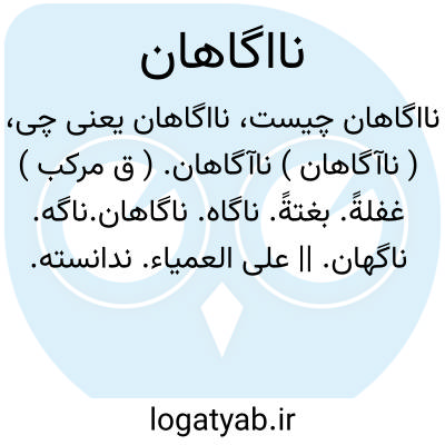 ( ناآگاهان ) ناآگاهان. ( ق مرکب ) غفلةً. بغتةً. ناگاه. ناگاهان.ناگه. ناگهان. || علی العمیاء. ندانسته.