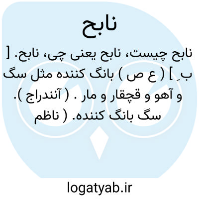 نابح. [ ب ِ ] ( ع ص ) بانگ کننده مثل سگ و آهو و قچقار و مار. ( آنندراج ). سگ بانگ کننده. ( ناظم الاطباء ). اصل نباح مخصوص صدای سگ است و بعد به صدای دیگر حیوانات هم اطلاق شده است. ( اقرب الموارد ). ج، نَوابِح، نُبَّح، نُبوح.