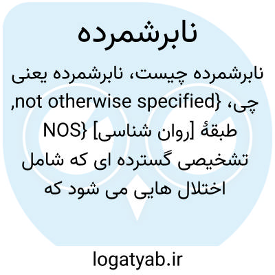 {not otherwise specified, NOS} [روان شناسی] طبقۀ تشخیصی گسترده ای که شامل اختلال هایی می شود که به طور دقیق زیرمجموعۀ اختلال های معینی قرار نمی گیرند، زیرا شواهد کافی برای تشخیص دقیق تر آنها در دست نیست