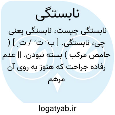 نابستگی. [ ب َ ت َ / ت ِ ] ( حامص مرکب ) بسته نبودن. || عدم رفاده جراحت که هنوز به روی آن مرهم نگذاشته و آن را نبسته باشند. ( ناظم الاطباء ):